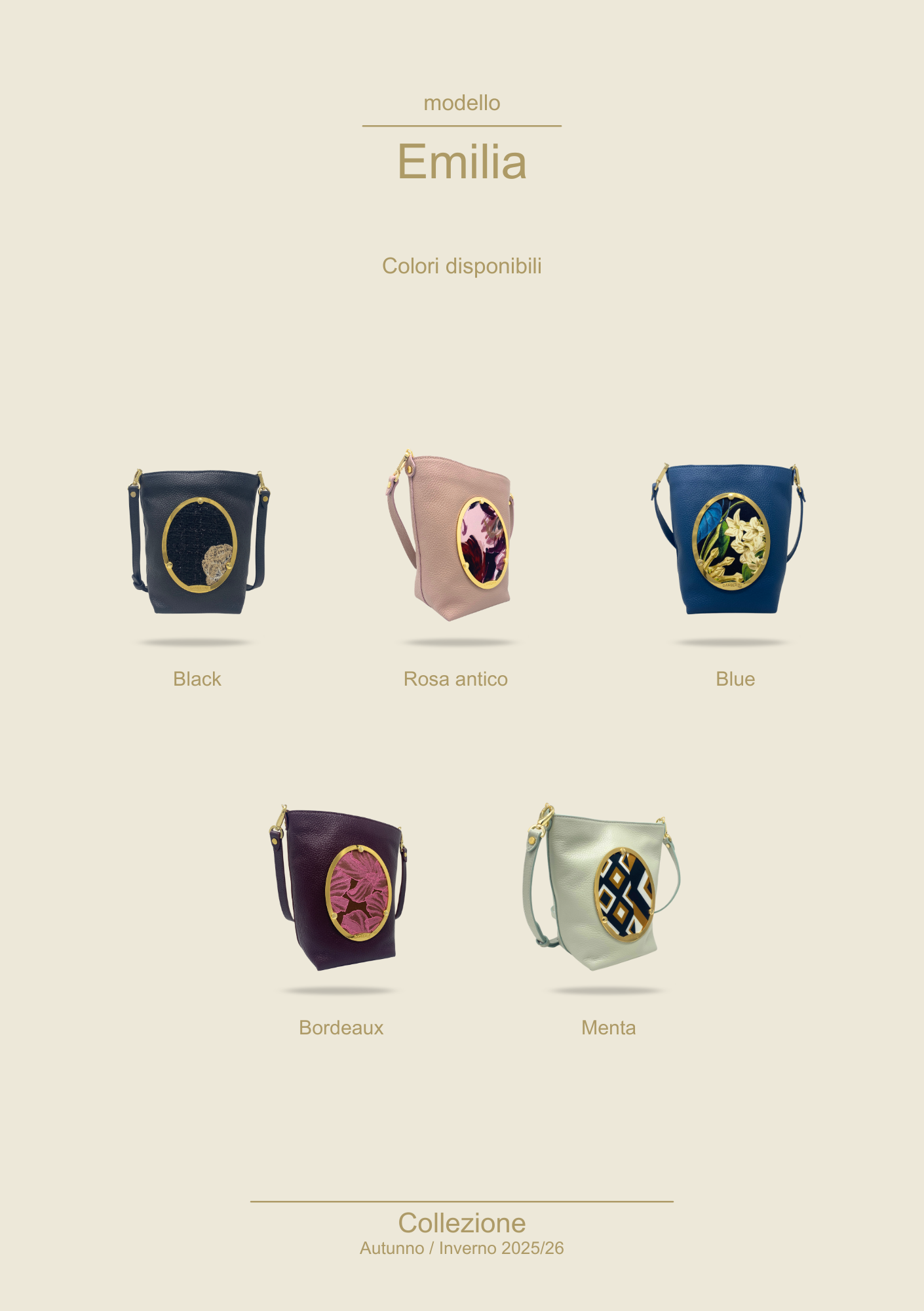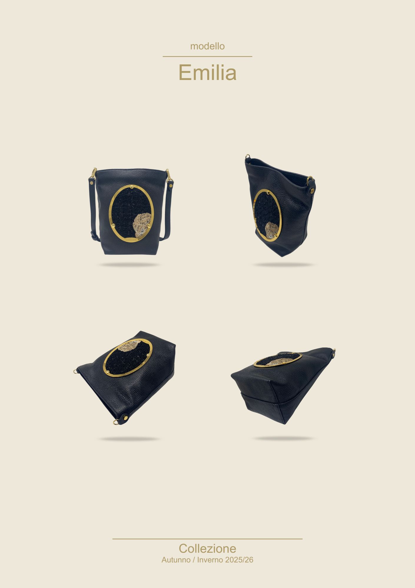 Emilia è il secchiellino pensato per chi ama muoversi leggera, senza rinunciare a ciò che conta davvero. Compatto nelle dimensioni ma sorprendente nella capienza, è l’alleato ideale per le giornate dinamiche, tra appuntamenti, spostamenti e momenti di relax. La sua forma a secchiello, pulita ed essenziale, dona un tocco contemporaneo a qualsiasi look. Le proporzioni equilibrate la rendono perfetta sia a tracolla sia portata a spalla, mentre la linea minimale la trasforma in un accessorio versatile, adatto dal giorno alla sera. Realizzata in pelle e lasciata sfoderata, Emilia è leggera e naturale al tatto, con quella sensazione di autenticità tipica degli accessori artigianali. La tracolla regolabile permette di adattarla al proprio stile di utilizzo: corta, per un uso più elegante, oppure lunga, per un mood casual e dinamico.